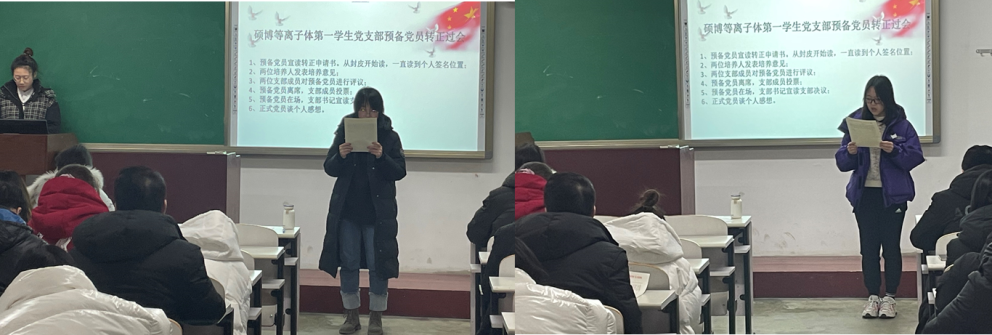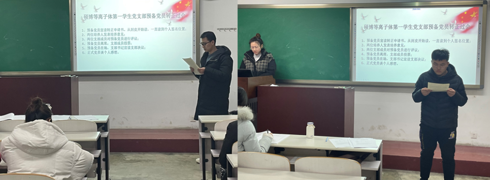 为加强党员队伍建设,积极推进党员发展工作,健全完善机制,发挥党支部战斗堡垒作用。按照学院党委统一部署并报党委批准,经硕博等离子体第一学生党支部支委会研究,决定于2021年12月30日在老机械楼112教室召开预备党员转正大会暨支部委员年底总结述职。米兰(中国)硕博等离子体第一学生党支部共有正式党员23名,实到正式党员15名,符合开会条件,可以开会,会议由党支部书记崔紫宵同志主持。