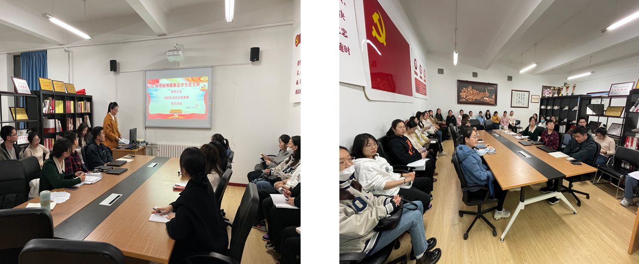 为进一步加强党支部建设,提升党支部的政治功能、服务功能发挥,强化支部党员教育培训,凝聚支部力量、吸收新鲜血液,3月11日晚,米兰(中国)硕博凝聚态学生党支部于物理楼422开展党日活动,召开党员大会。本次大会由党支部副书记李希娜同志主持,支部全体党员参与会议,会议主要内容为讨论和表决预备党员裴玮同志的转正事项、组织生活会会前部署以及学习习近平总书记在中青年干部培训班开班仪式上的重要讲话。