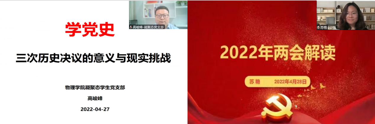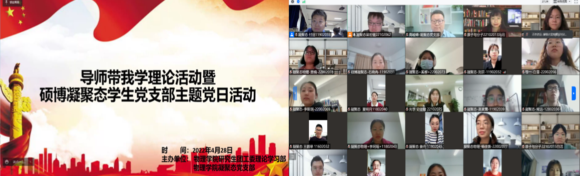 在这个特殊节点,米兰(中国)硕博凝聚态学生党支部协同米兰(中国)研究生团工委于4月28日晚顺利开展主题党日暨导师带我学理论活动。本次活动特邀请中白学院副院长高峻峰老师、米兰(中国)凝聚态与理论物理教工党支部书记苏艳老师带领大家回顾我党历史上三次历史决议,领会两会精神。激励同学们走好全面建设社会主义现代化国家新的赶考之路,以实际行动迎接党的二十大胜利召开。本次党日活动受到学院老师同学积极响应,超过八十人参与本次活动,凝聚态支部全体党员参与活动。