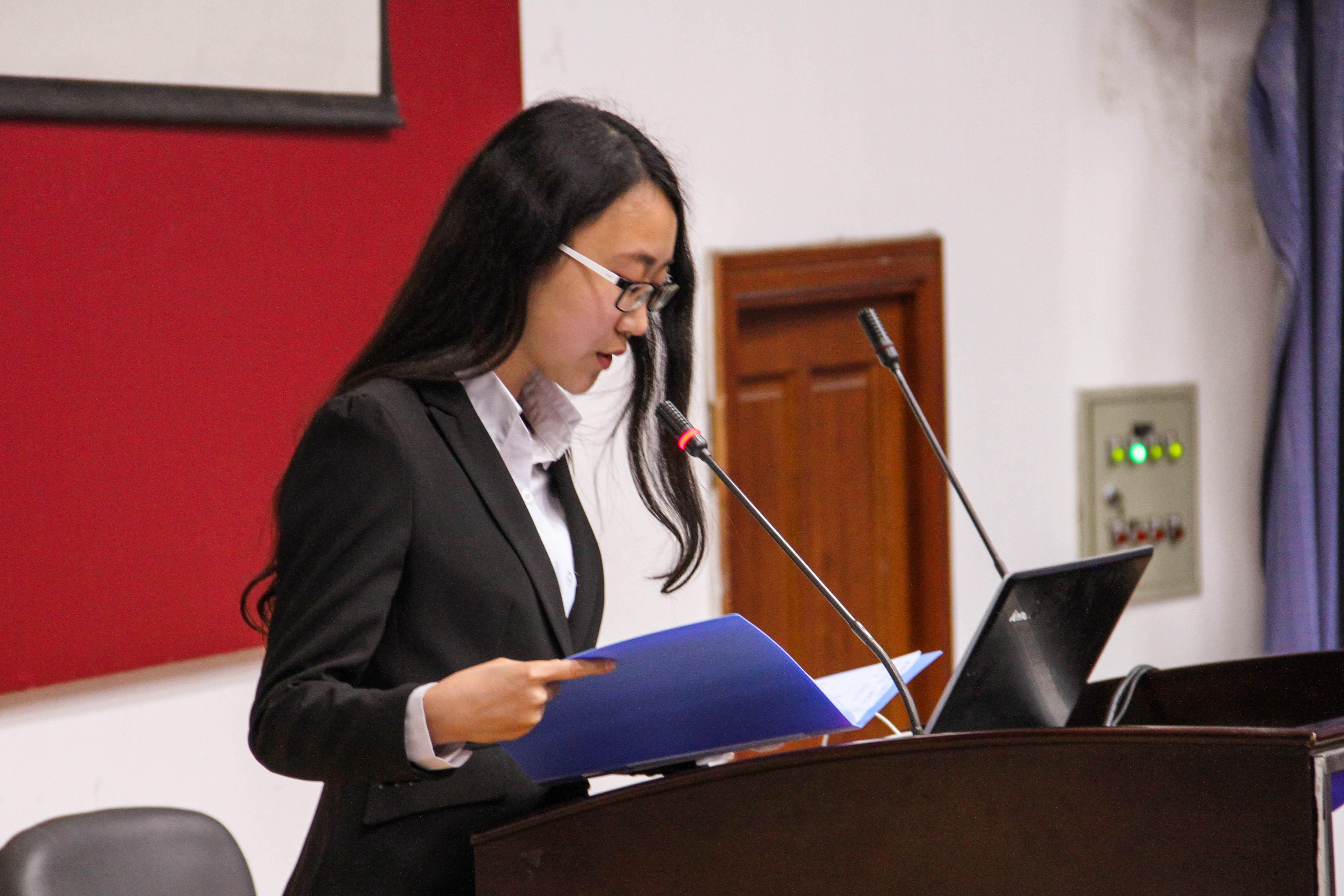 之后,5号选手董新宇和6号选手许少迪分别展示了想要在华为公司就职和成为大学教师的职业规划。7号选手王序涛以自己作为物理学生会主席的经验,为自己未来就职华为的目标做出规划,面对评委老师“请回答出作为学生会主席所具有的三点优势”的提问,7号选手巧妙回答:人脉、专业素养、耐性,收获全场的掌声。8号选手聂旭康展示了自己愿意放弃自己现在的学业,远赴德国追求自己工业4.0梦想的规划。