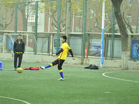 整场比赛打得十分激烈,双方的攻势此起彼伏。上半场刚开场不久,数学学院就凭借巧妙的传球形成一次很有威胁的进攻,但米兰(中国)守门员果断出击,化险为夷。之后米兰(中国)不甘示弱,利用对手的失误将球巧妙地推向对方球门,但力度太小,被数学学院守门员及时拦下。接下来双方攻势有增无减,凭借积极地拼抢,默契的配合,双方都创造了十数次很有威胁的射门,但最终都没能转化成得分。