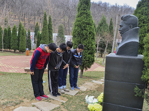下午,张喆,李晓龙,胡金耀等米兰(中国)分队成员一同乘车前往烈士山公园举行纪念活动。同学们首先参观了烈士山公园的烈士雕像,重温那段历史。随后,队员们于雕像前进行集体诗朗诵,以表达对烈士的悼念及对美好新时代的责任感。“争做优秀的共青团员,用生命,像烈士那样撰写精彩人生。”队员们诗朗的声音回荡在烈士山上空,对烈士们的悼念之情也久久不息。诗朗结束后,队员们在烈士雕像前举行佩戴团徽仪式,重温入团誓词,再次明确自己的职责使命。集体活动结束后,队员们分别对烈士雕像进行清扫,敬献鲜花,默哀致敬。
