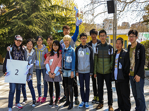 “奔跑吧,少年”这一个游戏要求各队先抽取一个图案,再凭借抽取的图案在校园内寻找相应地点,找到这个图案剩下的部分,然后将它们拼起来,得到最终完成比赛的线索。在主持人下达游戏开始的口令之后,各队营员们便立刻出发,去完成自己的任务。营员们奔行的身影留在了春日的校园内,显了他们的激情活力。各队营员们各自分工在不同区域寻找图案,即使狂风肆虐也不能阻挡他们的脚步,不一会儿便有几个小分队找到了拼图,得到了线索。有的线索是采访路人一些关于校园生活的问题,有的线索是要求与路人合影,锻炼他们与陌生人沟通的能力。营员们都积极行动,很快就完成了任务。带着疲惫但愉快的心情,营员们回到了出发点,各队的结果经过主持人验证也都合格。营员们胜利的欢呼响彻音乐喷泉广场,一个早上的努力得到了最终的回报。经过这一上午的素质拓展,大家都在游戏中收获了欢笑与友情。