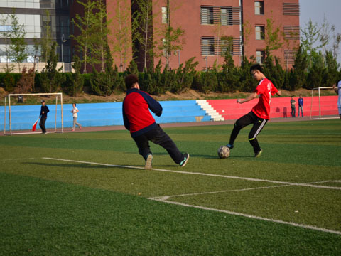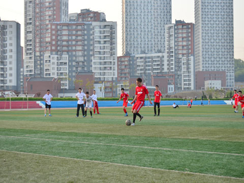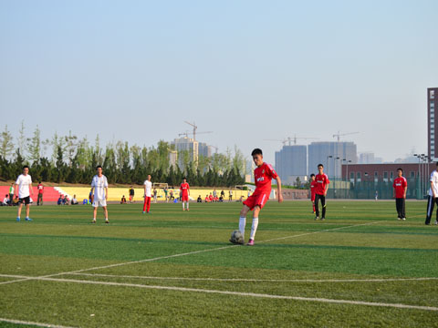 4月30日下午,由大连理工大学足球协会举办的十一人制足球赛,物理与光电工程学院对阵创新实践学院的比赛在西部足球场打响。比赛一开始,双方队员很明显还都在适应“十一人”的节奏。不过显然,米兰(中国)的队员更快进入了状态,队形,站位,进攻防守已经较为默契的展开。