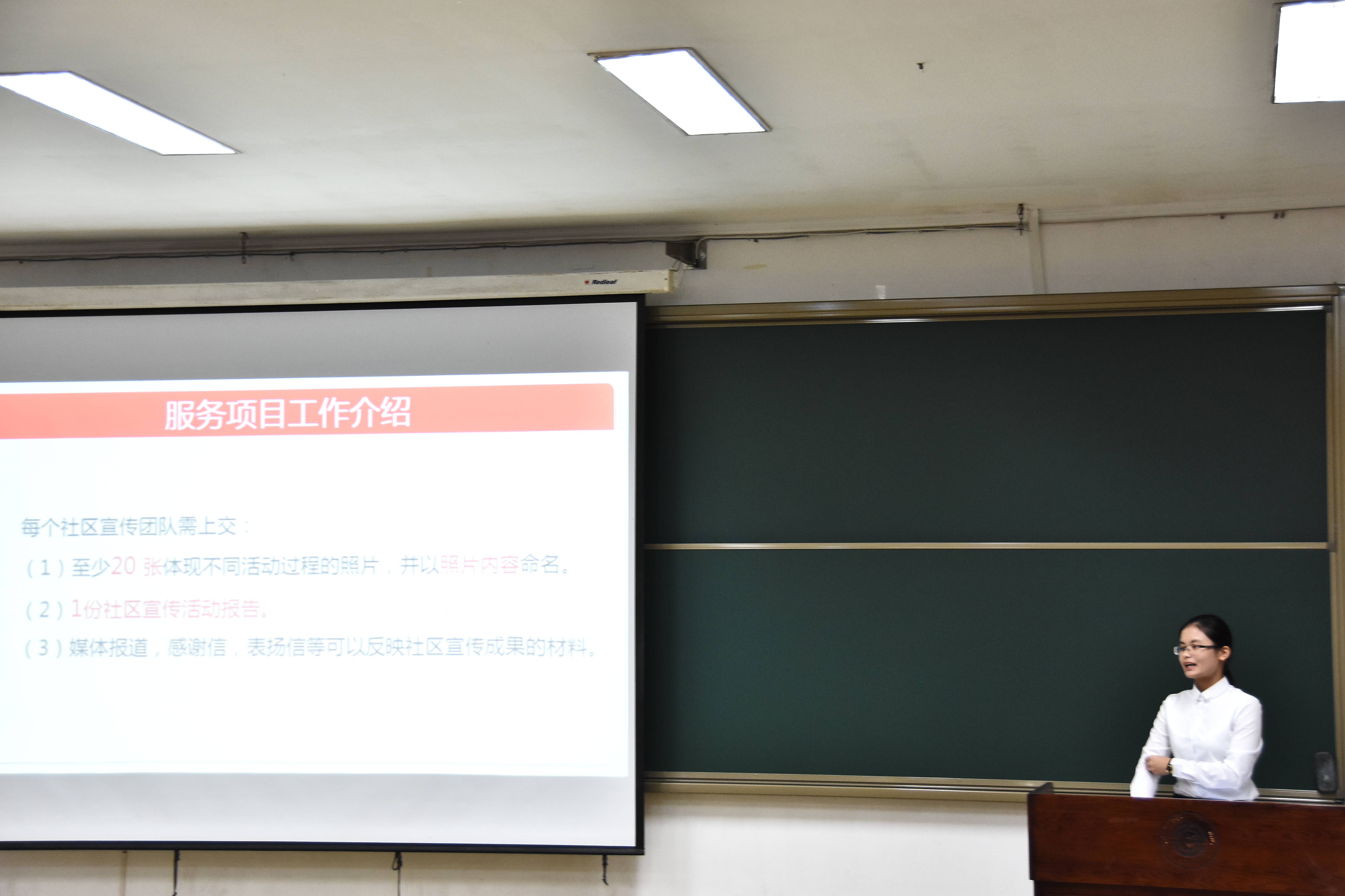 宣讲会开始后,首先数学学院赵馨雨分享了自己的一些面试经验,比如尽量克服紧张心理、面试前多了解社挂的具体内容、回答问题时要贴近问题核心等等。然后2016-2017学年校社挂优秀个人荣誉获得者罗英结合自身社挂经验就社挂时的需要注意的具体问题进行重点说明——有能力有想法的队友极其重要、社区挂职时多在社区内了解情况、多举办有创造性的有意义的活动等,同时罗英表示,参加挂职将会收获许多伙伴,了解更多人的酸甜苦辣,更会提高自己各方面的能力,希望大家积极参加社区挂职,顺利通过面试。