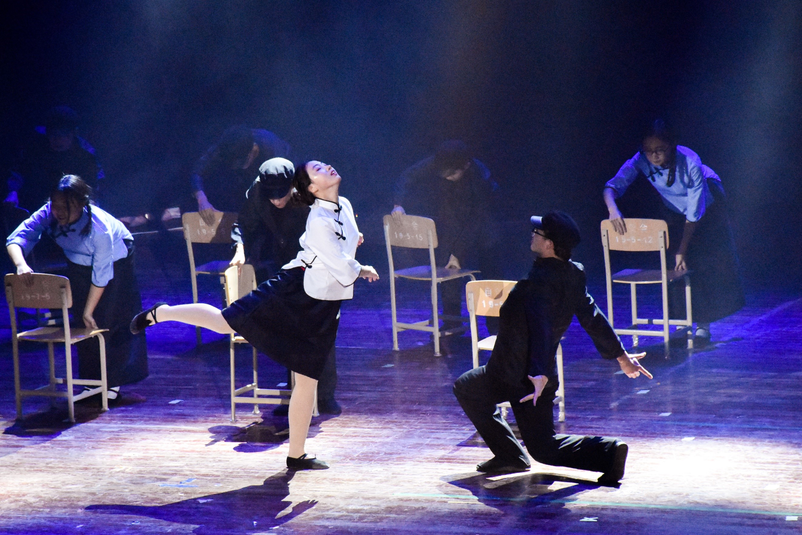 《一代英雄铺前路》用舞蹈的方式讲述一代革命英雄们学生时代的故事。当年的湖南第一师范学院,恰同学少年,风华正茂,那一间教室,是酝酿新中国最初的摇篮。舞蹈开始,灵动的旋律响起,仿佛唤醒了沉睡的大地,使人们产生对美好未来的憧憬。舞动的身影中既有对知识的渴望,也有对校园爱情的向往。挥舞的红丝带,像是跳跃的火苗,喷吐着青春的力量。舞动的身影仿佛要使人们穿越历史,回到那个让人热血沸腾的红色年代。舞蹈不仅传递着物理人不畏艰险、勇攀高峰的精神,更是对十九大不忘初心、牢记使命精神的体现。